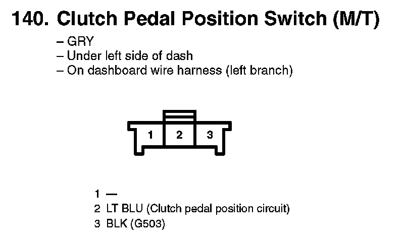 140. Clutch Pedal Position Switch (M/T):