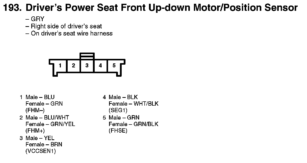 193. Driver's Power Seat Front Up-down Motor/Position Sensor: