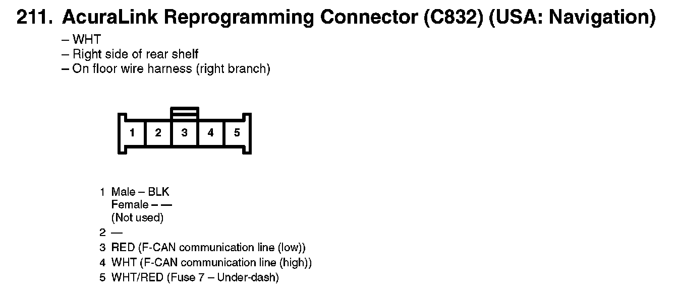 211. AcuraLink Reprogramming Connector (C832) (USA: Navigation):