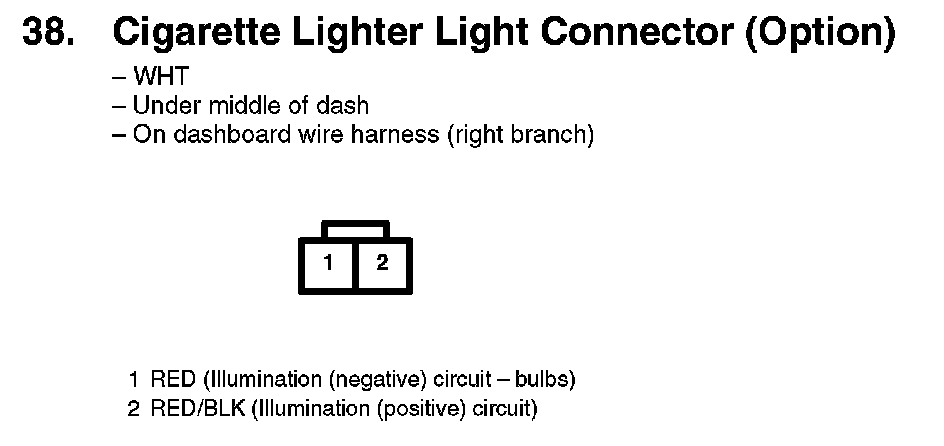38. Cigarette Lighter Light Connector (Option):