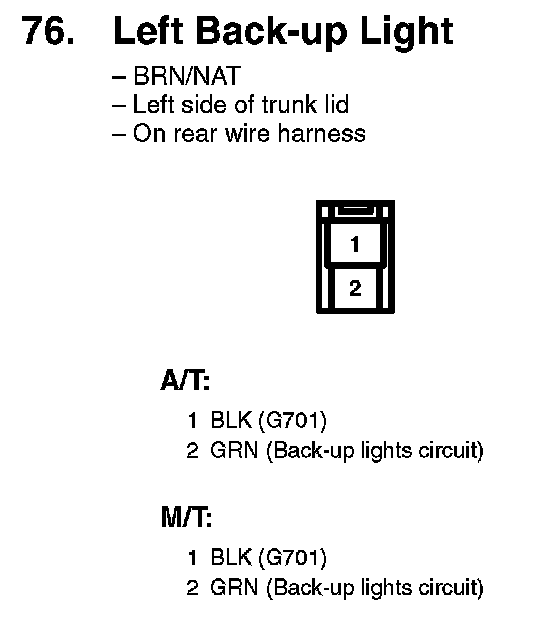 76. Left Back-up Light:
