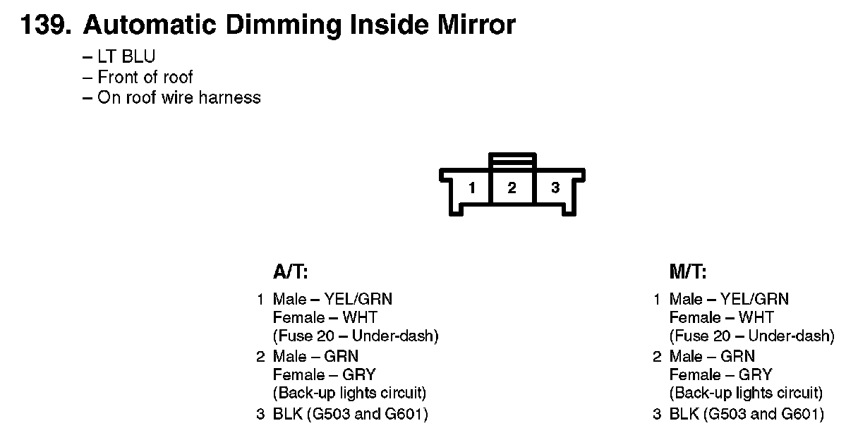 139. Automatic Dimming Inside Mirror:
