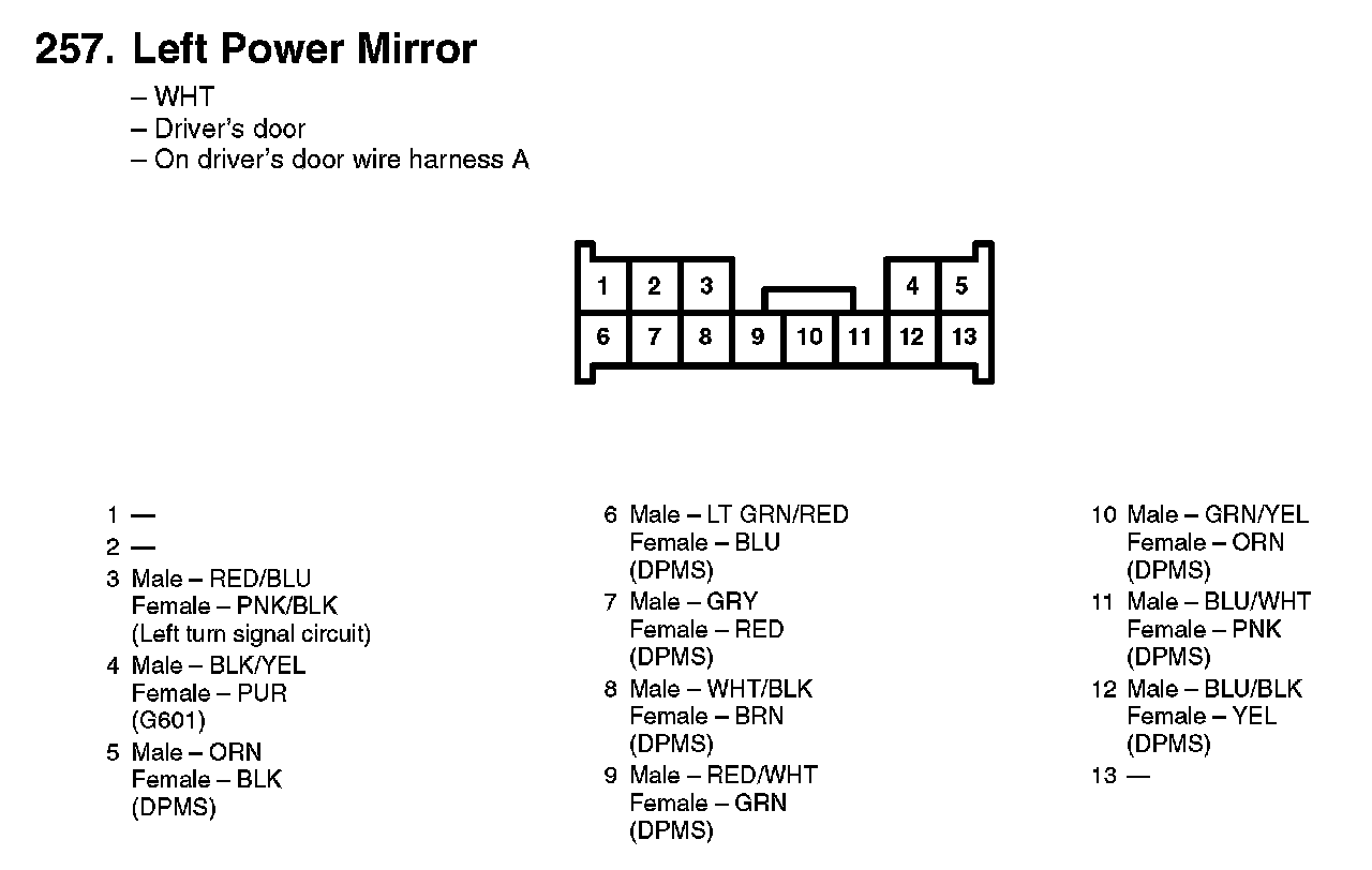 257. Left Power Mirror: