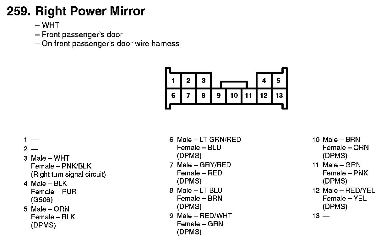 259. Right Power Mirror: