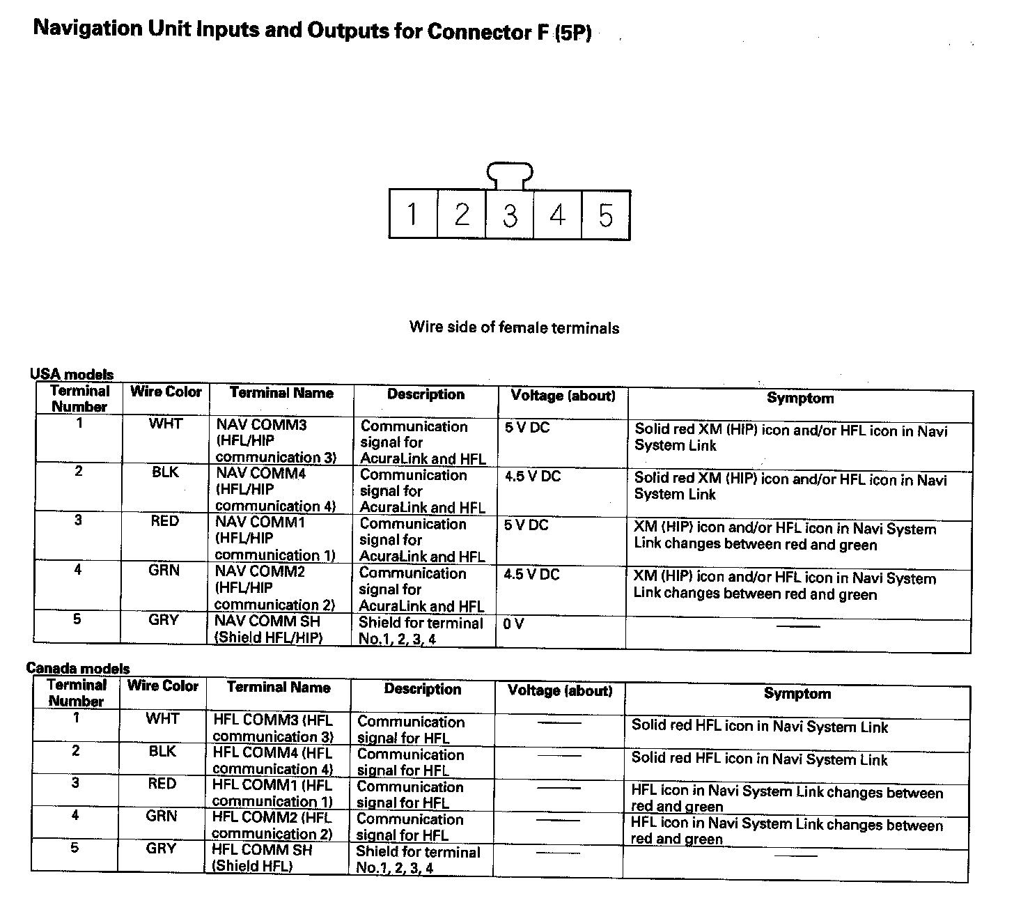 Navigation Unit Inputs And Outputs For Connector F (5P):
