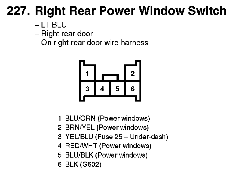 227. Right Rear Power Window Switch: