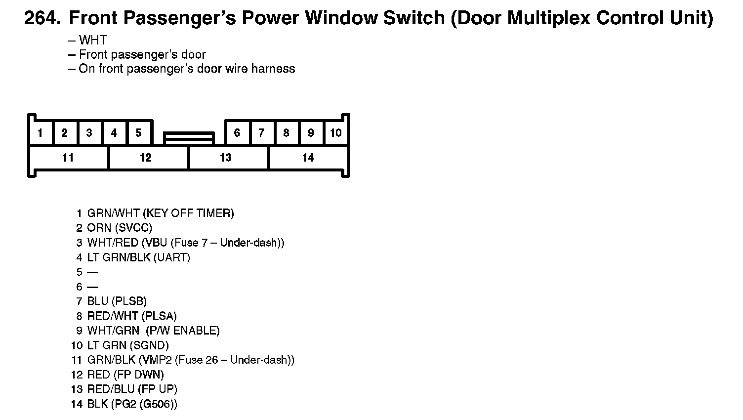 264. Front Passenger's Power Window Switch (Door Multiplex Control Unit):