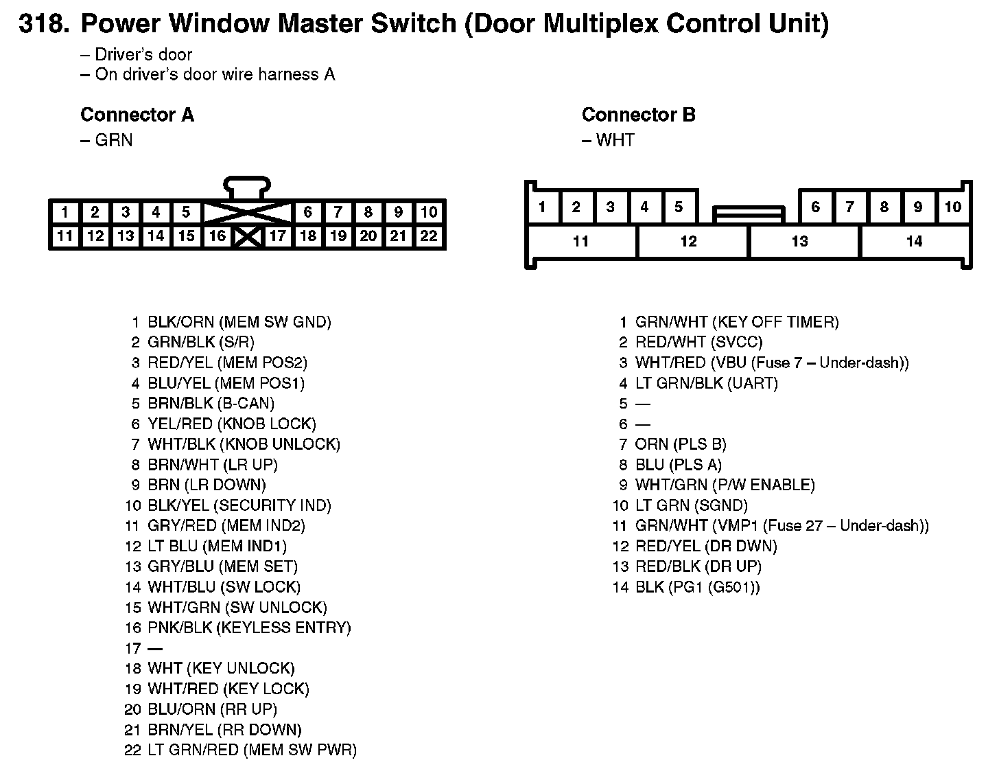 318. Power Window Master Switch (Door Multiplex Control Unit):