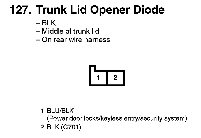 127. Trunk Lid Opener Diode: