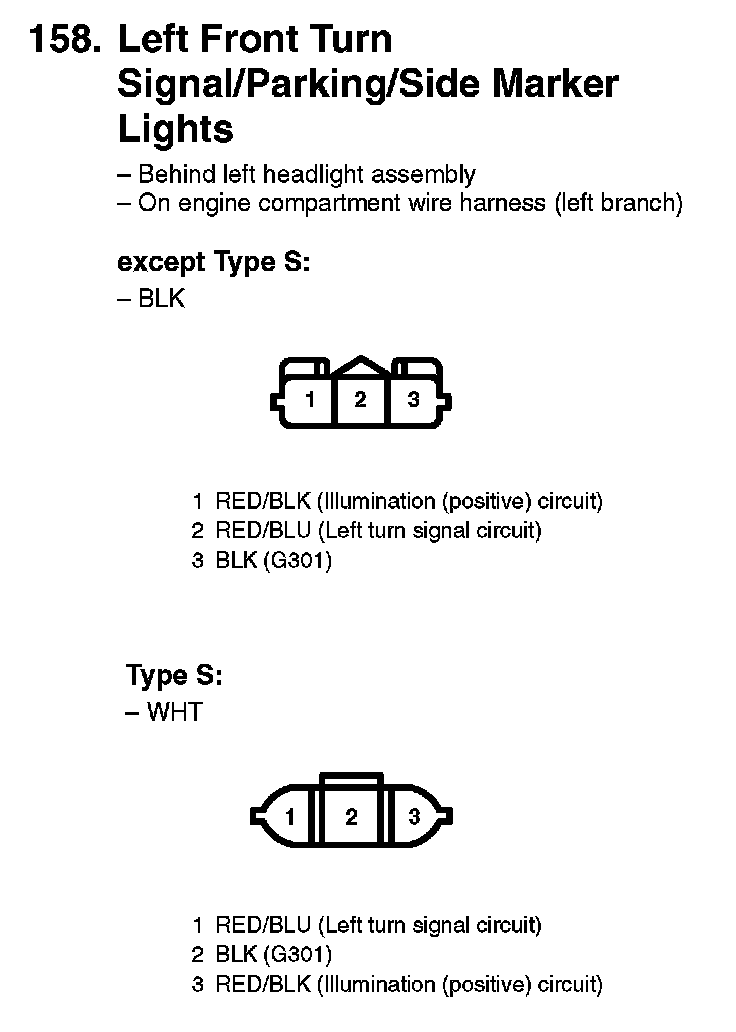 158. Left Front Turn Signal/Parking/Side Marker Lights: