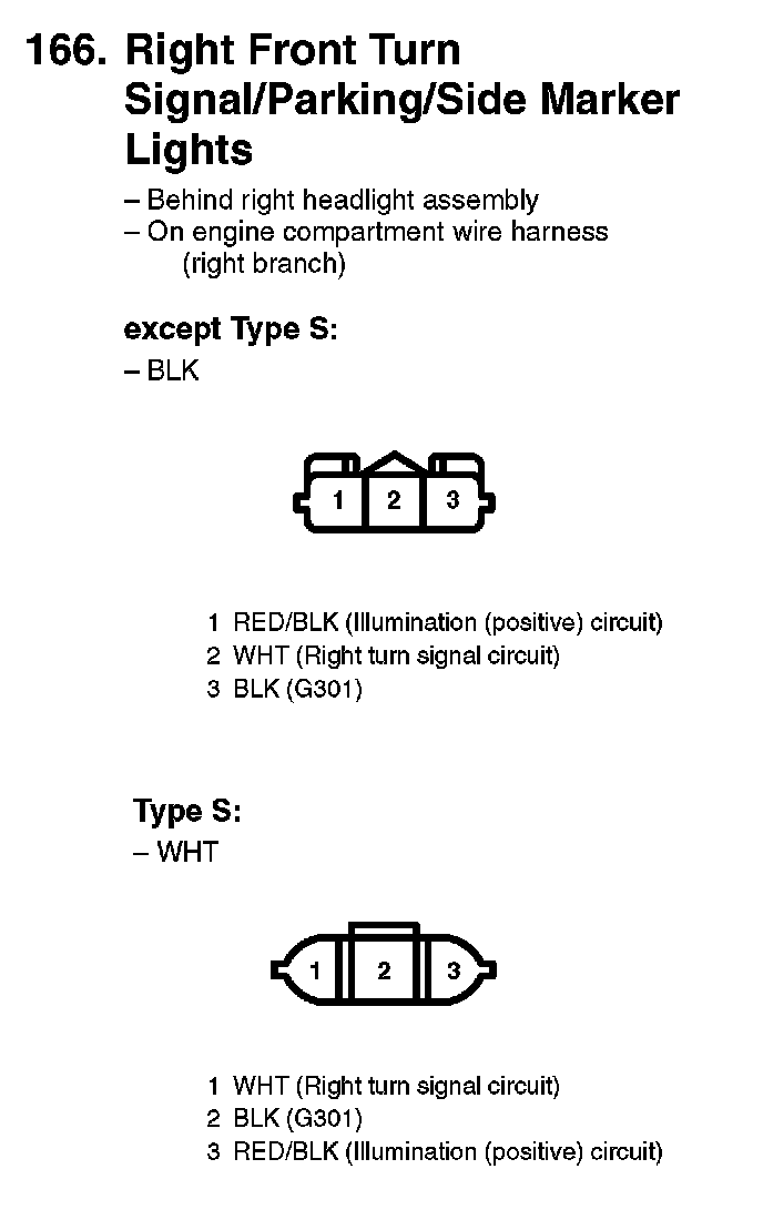 166. Right Front Turn Signal/Parking/Side Marker Lights:
