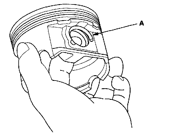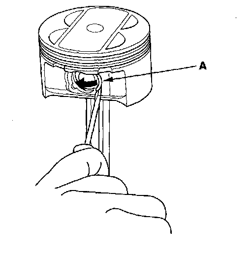1. Install a piston pin snap ring (A) only on one side.