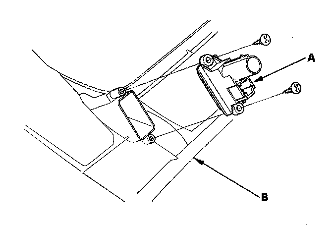 2. Remove the self-tapping screws and the in-car temperature sensor (A) from the driver's dashboard lower cover (B).