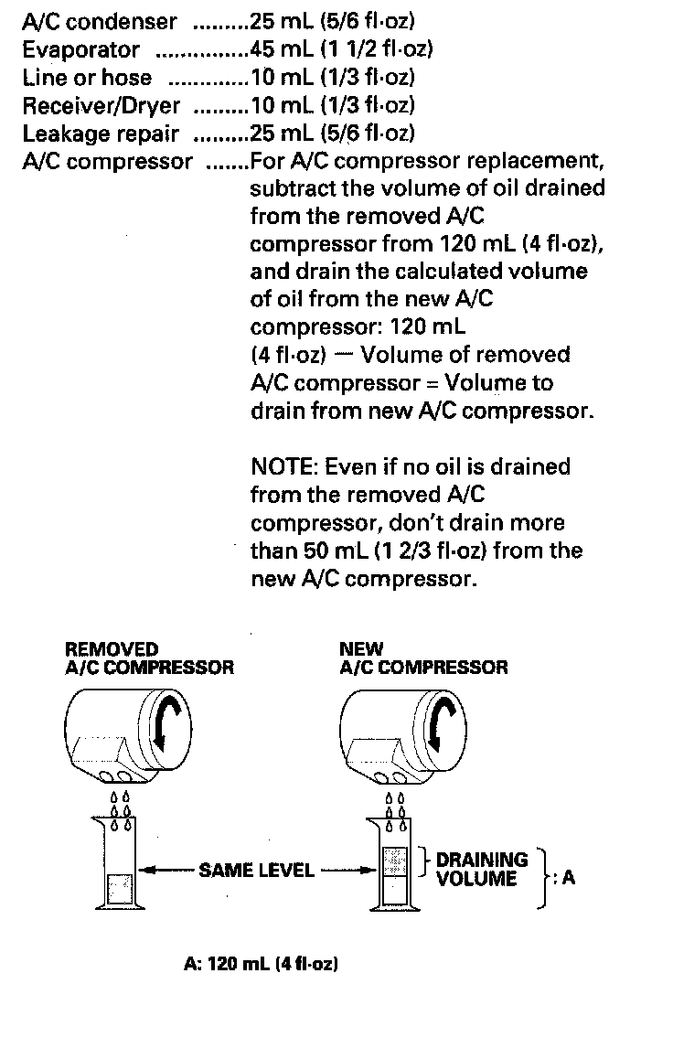 A/C Refrigerant Oil ReplacementRecommended PAG oil: DENSO ND-OIL 8