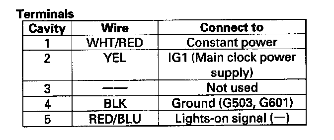 2. Disconnect the 5P connector (A) from the clock.