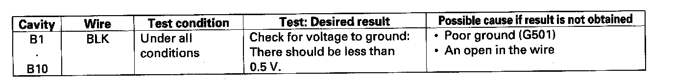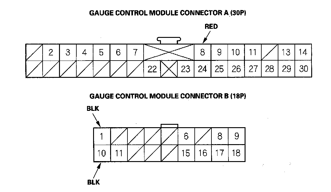 12. Reconnect the connectors, and make these input tests at gauge control module connector B.