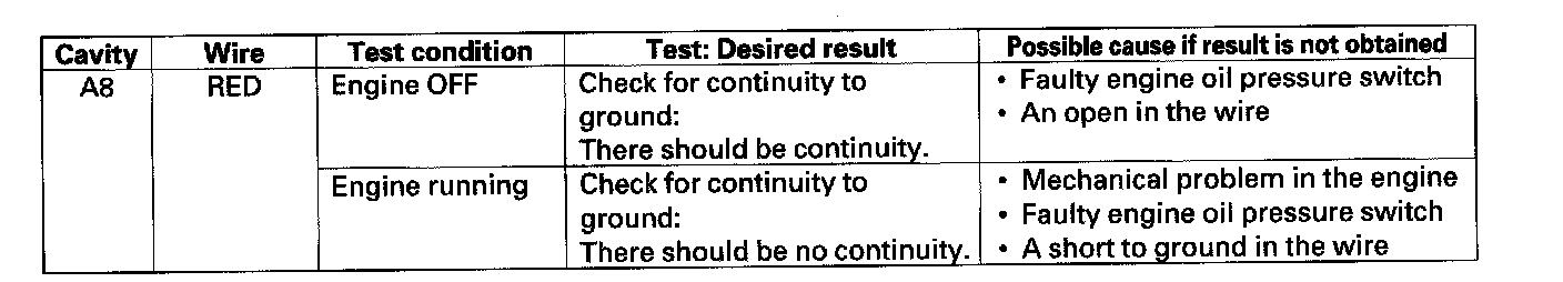 6. Reconnect the connectors. Turn the ignition switch ON (II) and make these input tests at the connector.