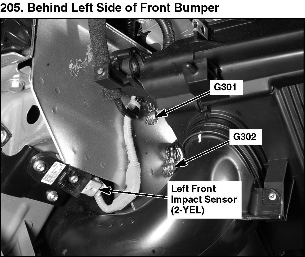 205. Behind Left Side Of Front Bumper: