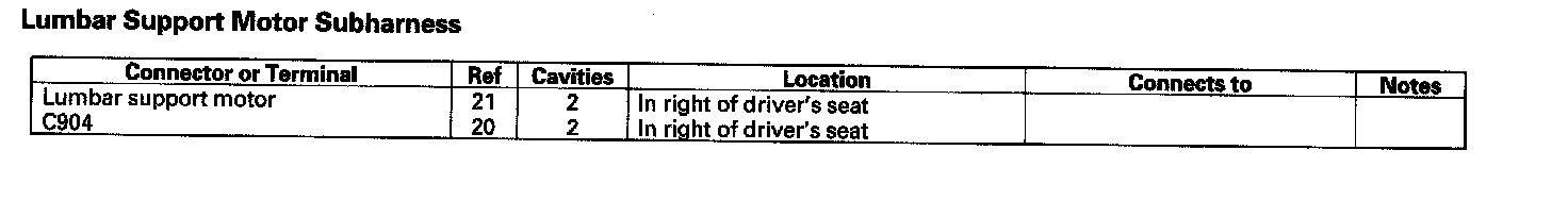 Lumbar Support Motor Subharness: