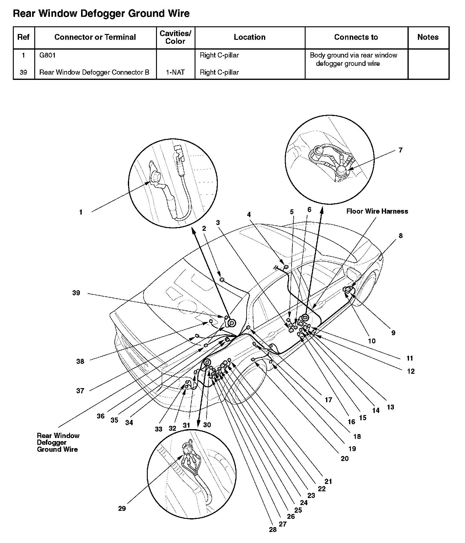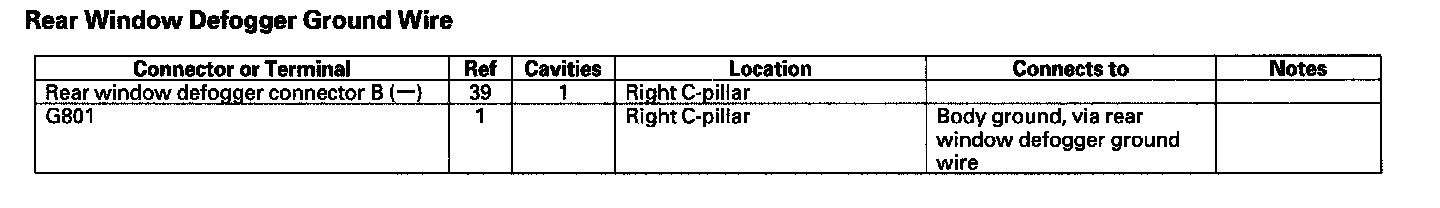 Rear Window Defogger Ground Wire: