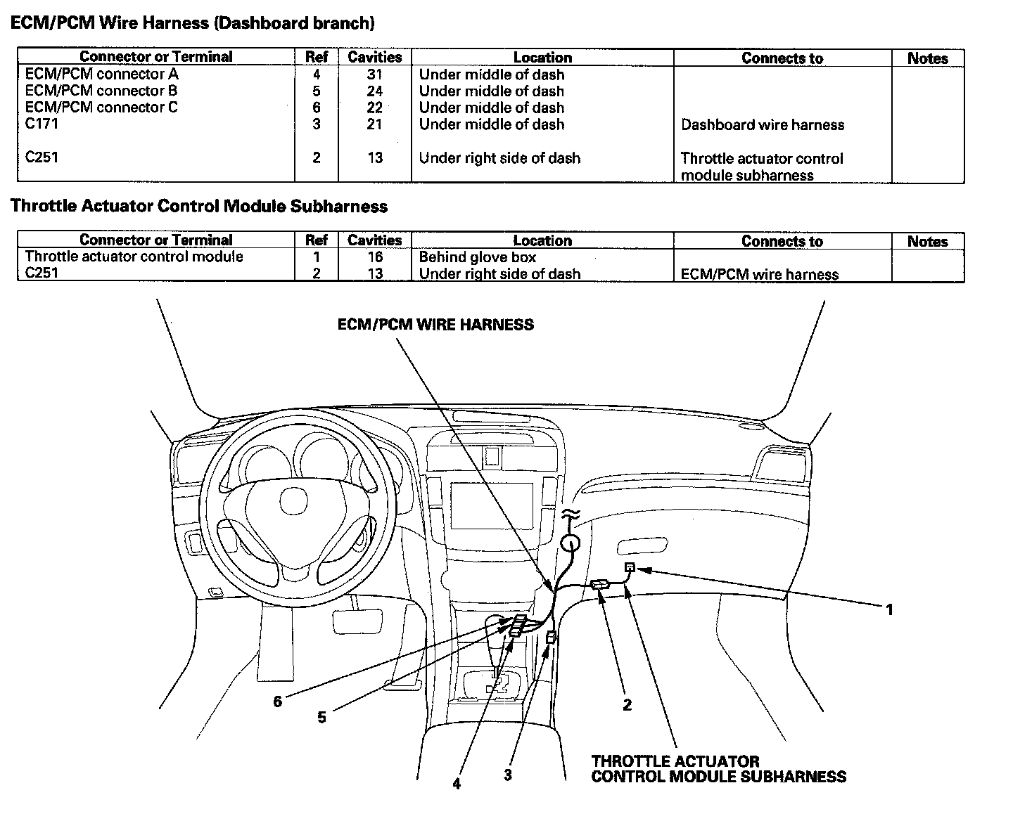 ECM/PCM Wire Harness (Dashboard Branch) / Throttle Actuator Control Module Subharness: