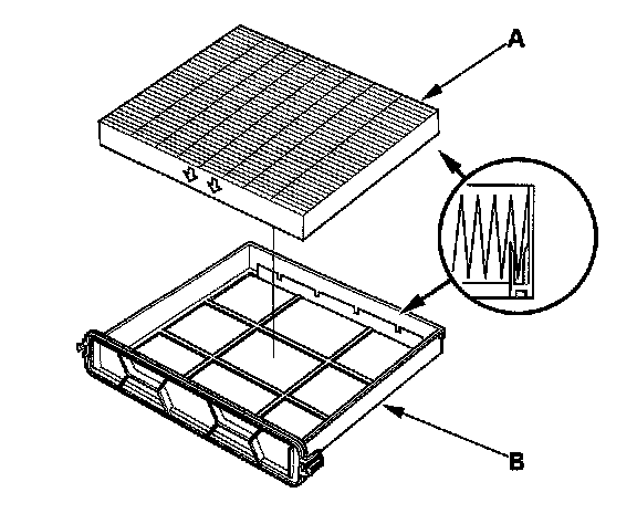 3. Remove the filter (A) from the housing (B), and replace the filter.