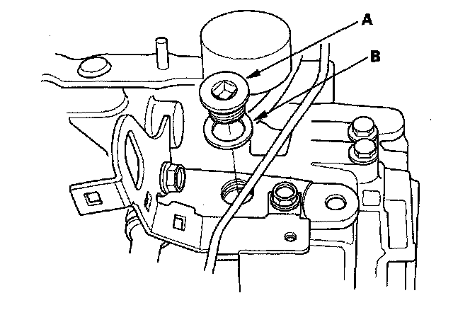 12. Remove the filler plug (A) and washer (B).
