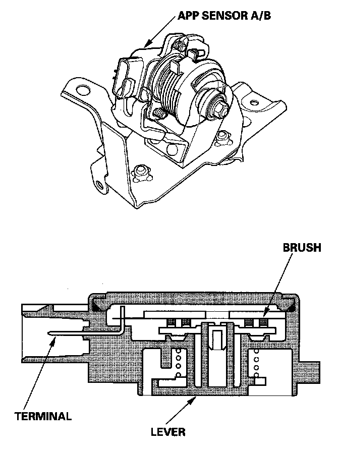 As the accelerator pedal position changes, the sensor varies the signal voltage to the ECM/PCM.