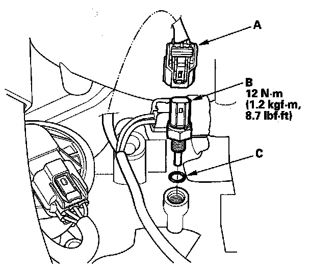4. Remove ECT sensor 1 (B).