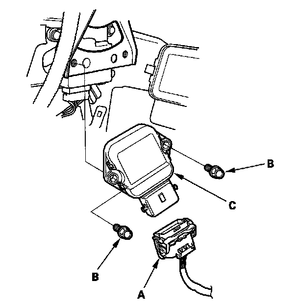 3. Remove the bolts (B), and the throttle actuator control module (C).