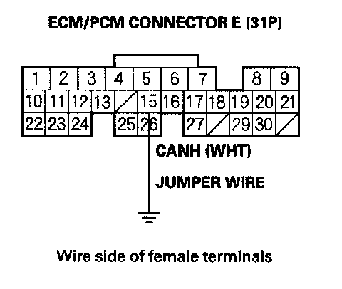 19. Remove the jumper wire from ECM/PCM connector E(31P).