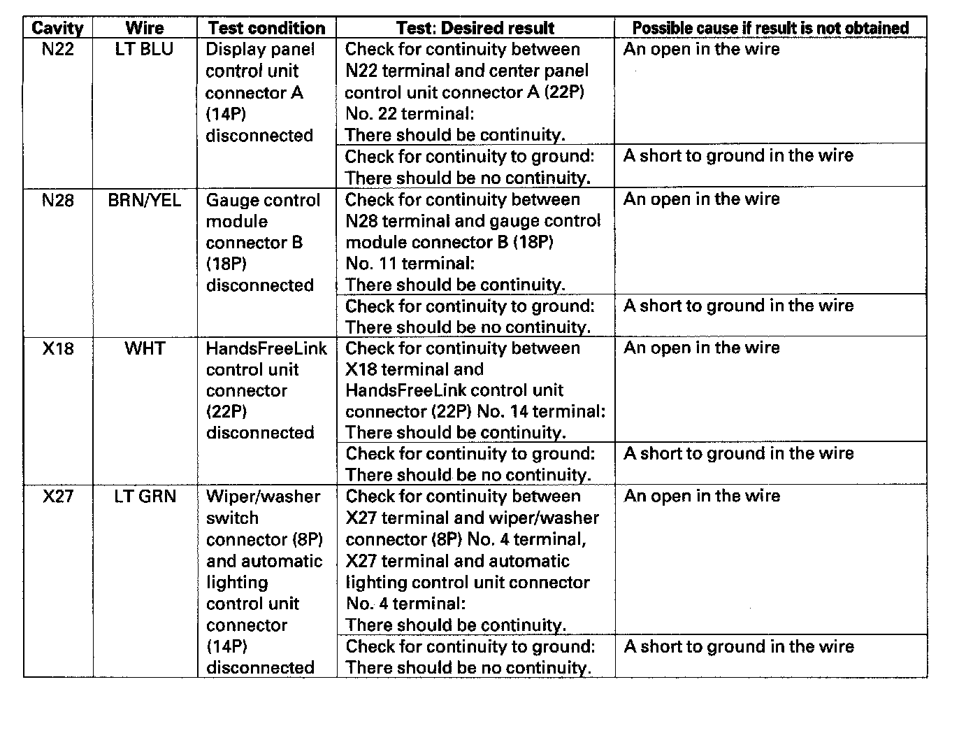 4. With the connectors still disconnected, make these input tests at the connectors.