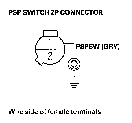 13. Check for continuity between PSP switch 2P connector terminal No. 1 and body ground.