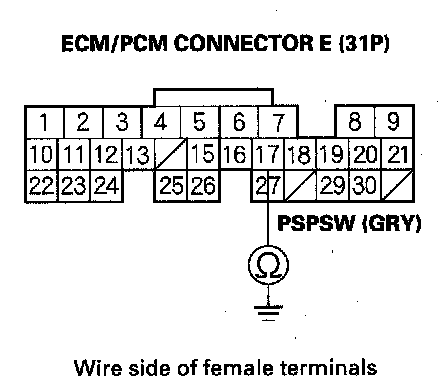 24. Check for continuity between PSP switch 2P connector terminal No. 2 and body ground.