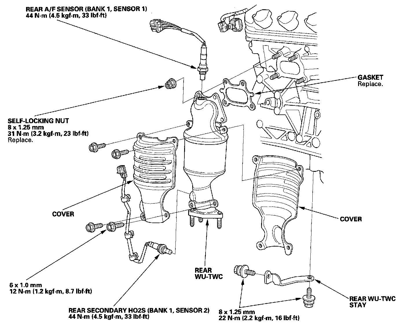 2. Disconnect the front air fuel ratio (A/F) sensor connector and front secondary heated oxygen sensor (secondary HO2S) connector.