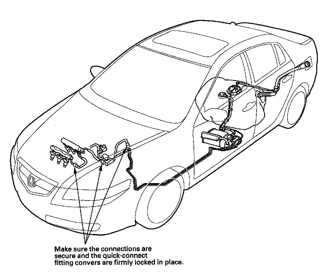 Check the fuel system lines and hoses, for damage, leaks, and deterioration. Replace any damaged parts.