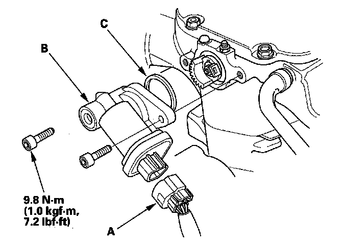 4. Install the parts in the reverse order of removal with a new O-ring (C).