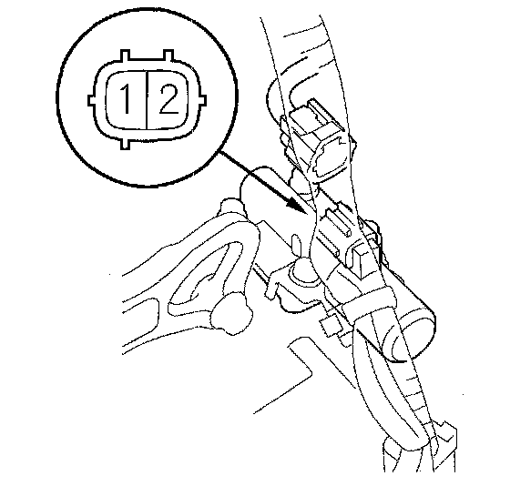 12. Connect a jumper wire from the negative battery terminal to A/T clutch pressure control solenoid valve C connector terminal No. 2, and connect a jumper wire from the positive battery terminal to connector terminal No. 1. Make sure A/T clutch pressure control solenoid valve C moves.