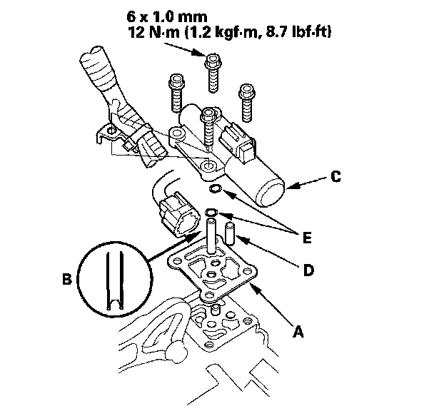 14. Clean the mounting surfaces and the fluid passages of the solenoid valve body and the transmission housing.