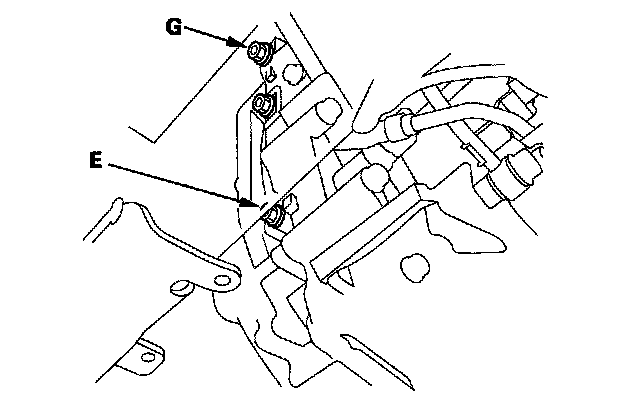 18. Connect the oil pressure gauge to the 3rd clutch pressure inspection port (E) and the 5th clutch pressure inspection port (G).