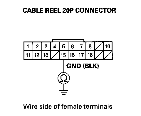 6. Check for continuity between cable reel 20P connector terminal No. 15 and body ground.