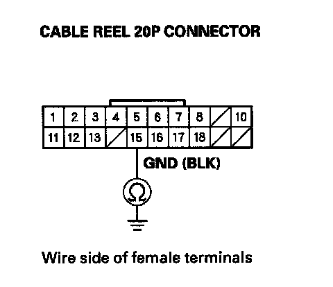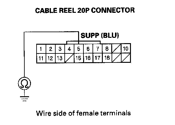 7. Check for continuity between cable reel 20P connector terminal No. 5 and body ground.