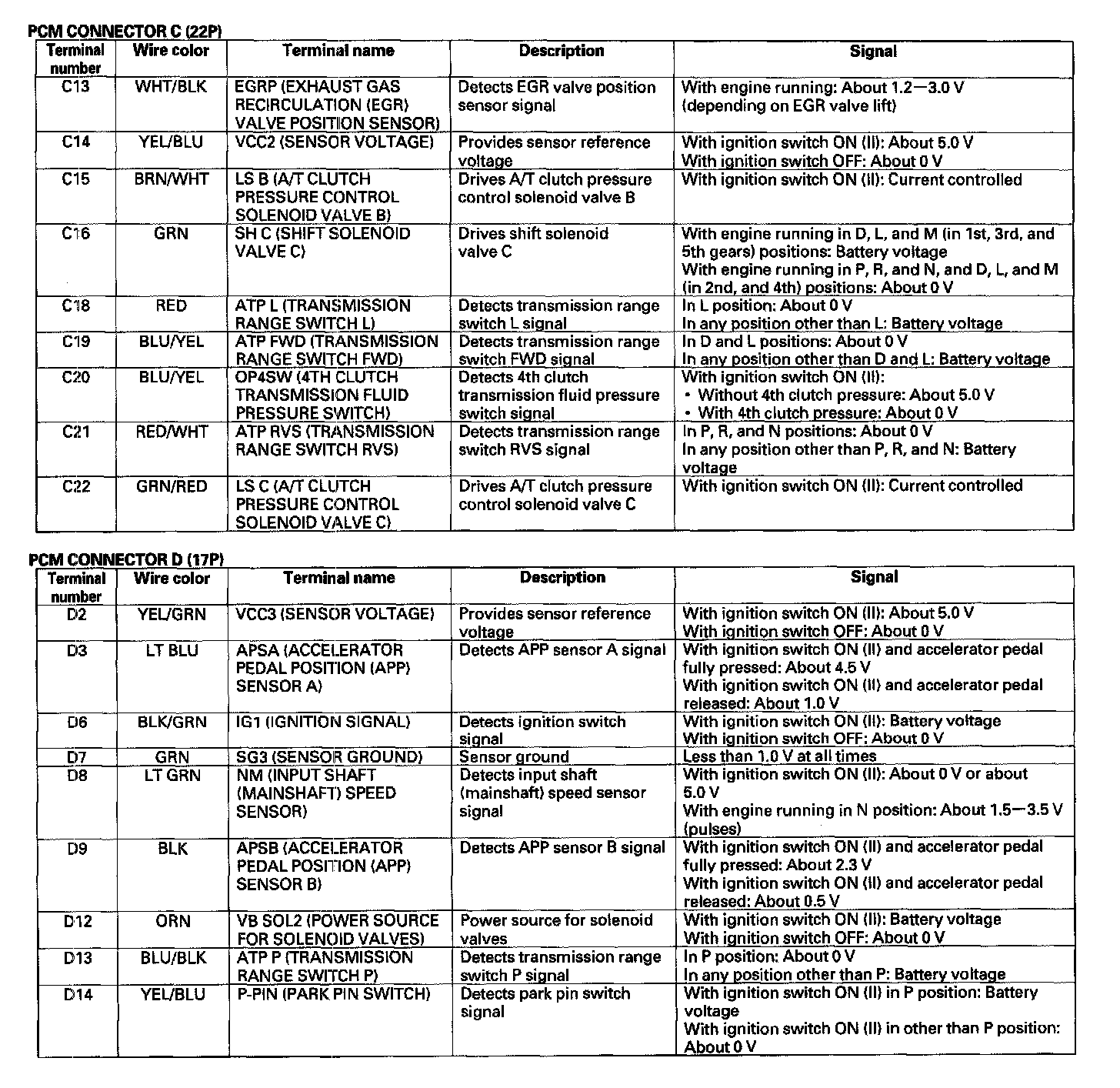 PCM A/T Control System Inputs and Outputs (Part 4):