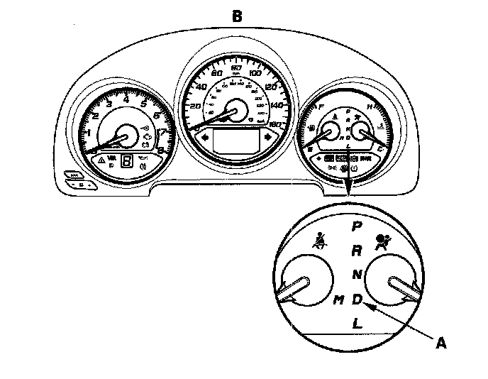 When the PCM senses an abnormality in the input or output system, the D indicator (A) in the gauge control module (B) will usually blink.