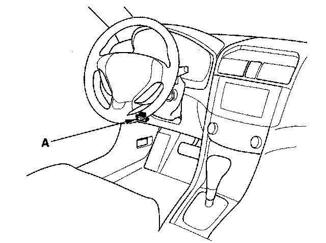 When the D indicator has been reported on, connect the HDS to the DLC (A) (located under the driver's side of the dashboard). Turn the ignition switch ON (II), select SCS mode, then the D indicator will indicate (flash) the DTC.