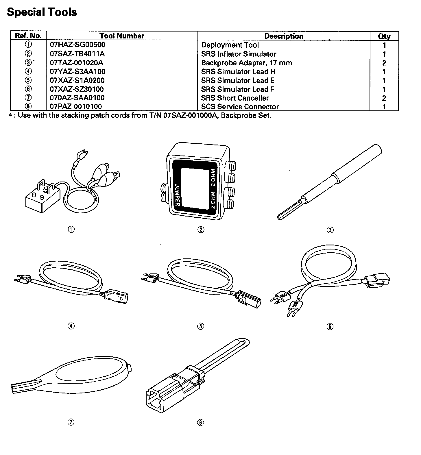 Restraints Special Tools: