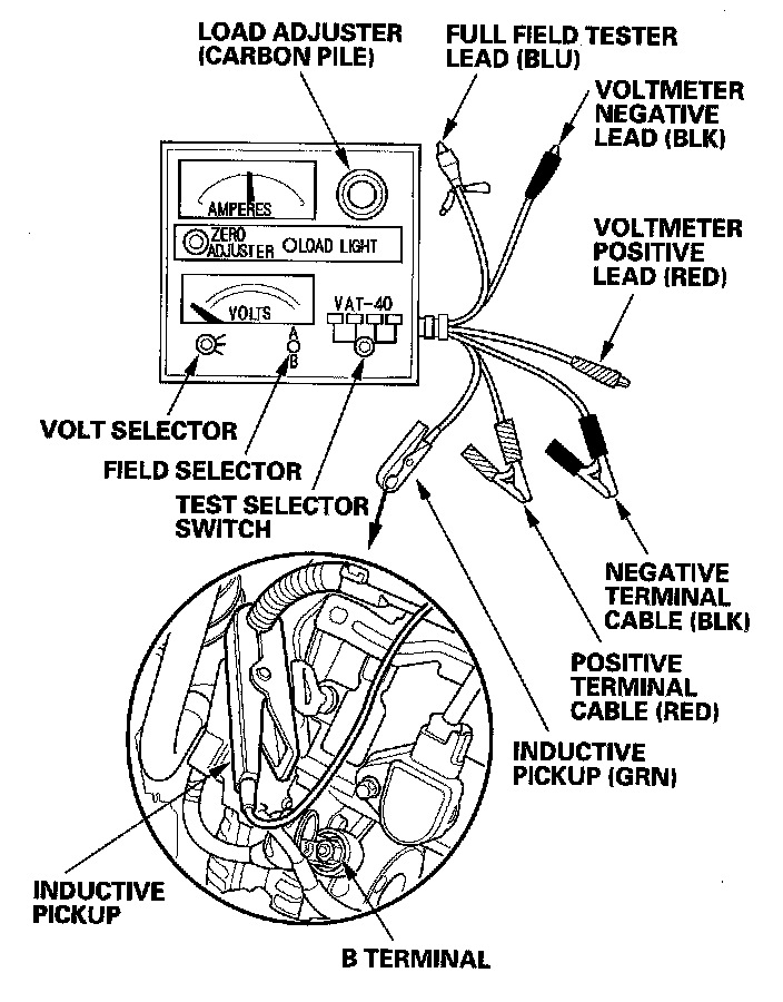 10. Apply a load with the VAT-40 until the battery voltage drops to between 12 - 13.5 V.