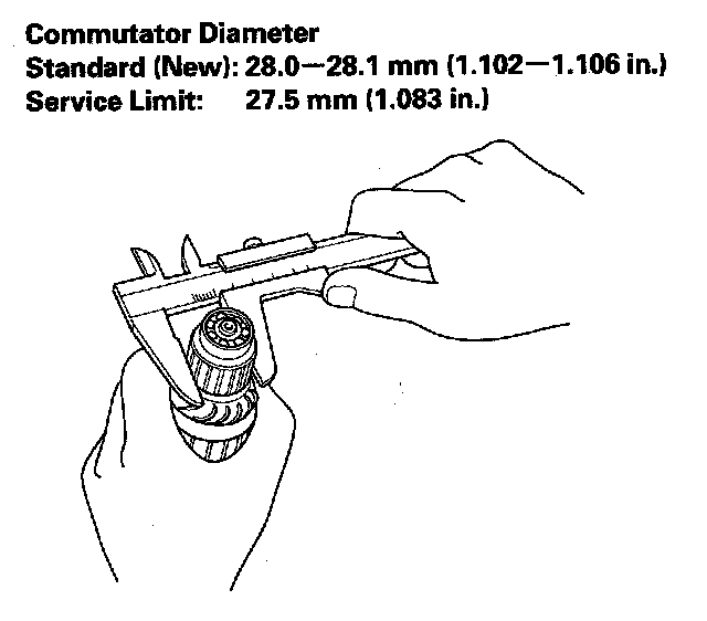 5. Check the commutator diameter. If the diameter is below the service limit, replace the armature.