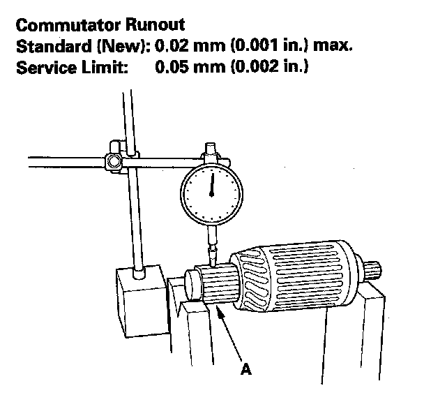 6. Measure the commutator (A) runout.