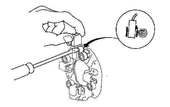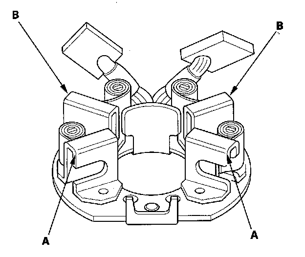12. Check for continuity between the (+) brush holder (A) and ( - ) brush holder (B). If there is continuity, replace the brush holder assembly.